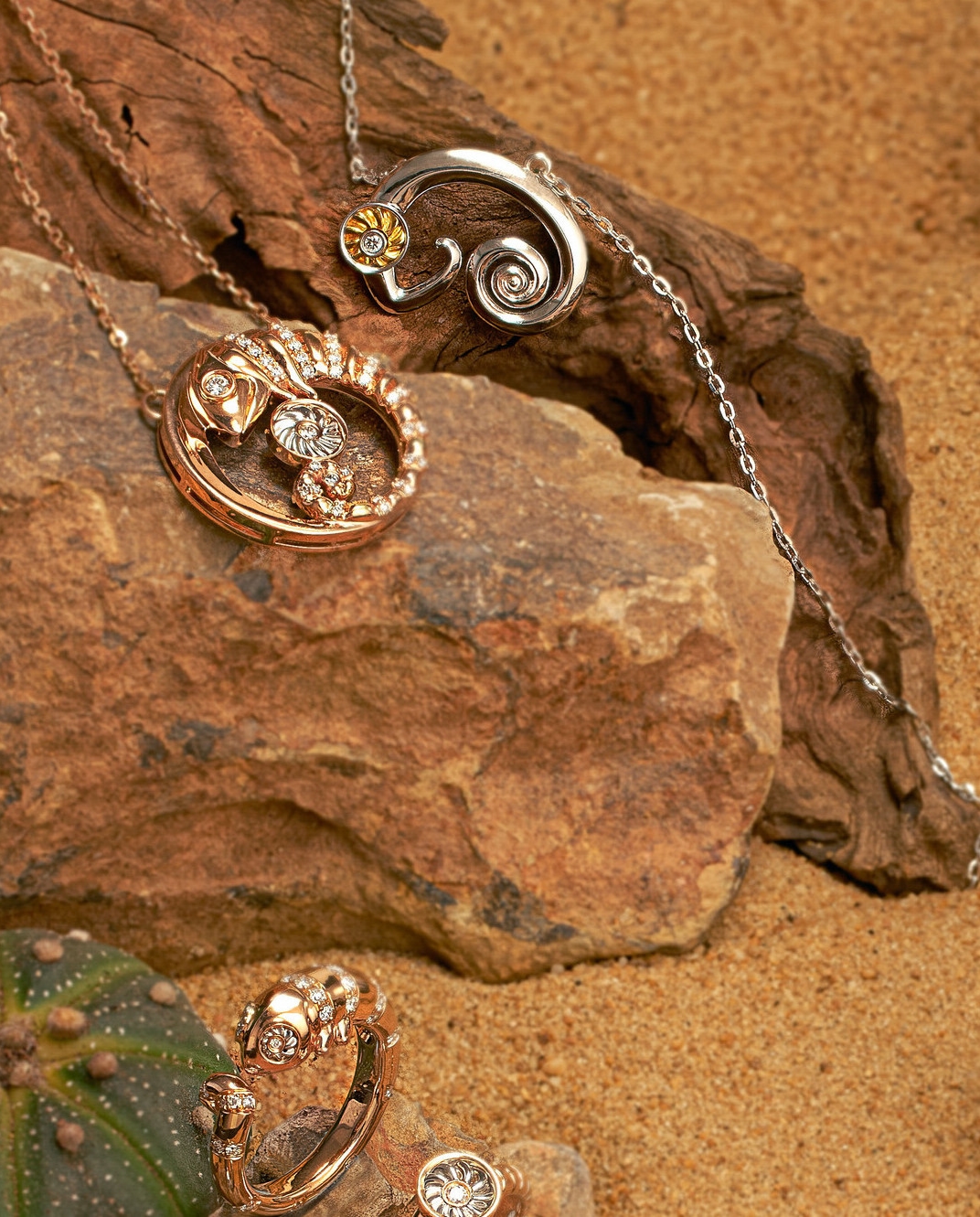 Mỗi sản phẩm trong bộ sưu tập đều là một câu chuyện nhân văn trong thiết kế, vẻ quyến rũ mềm mại, sự đa dạng linh hoạt của người phụ nữ hiện đại – sống hết mình với đam mê và ước mơ, thông minh và linh hoạt, được Nhà thiết kế và các nghệ nhân MWJ chăm chút tỉ mỉ, thể hiện sự sang trọng qua từng đường nét với vàng 18k và kim cương đính tinh xảo ở các chi tiết mắt và theo phần thân.