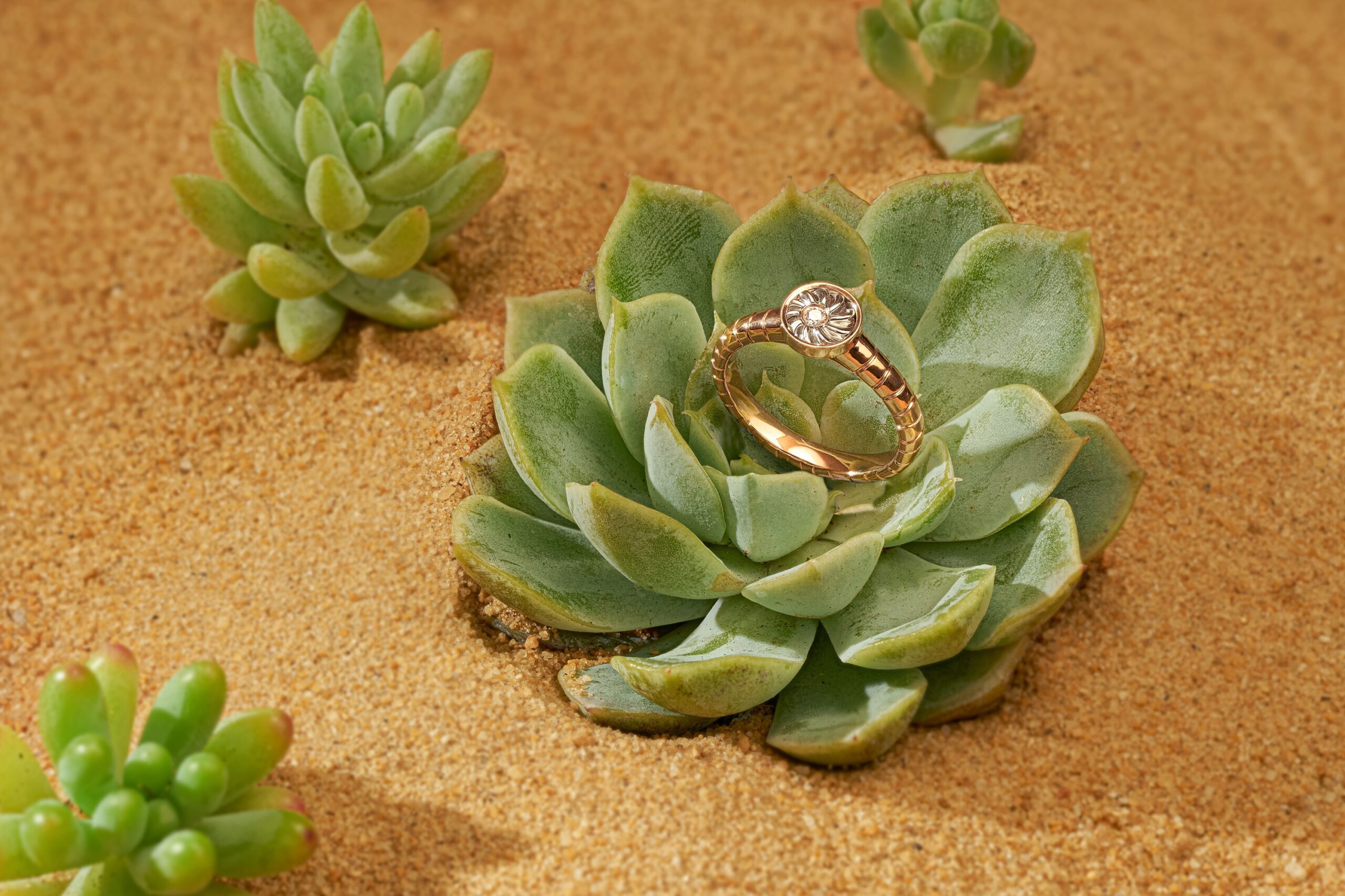 Lấy ý tưởng từ đôi mắt tắc kè hoa, biểu tượng của sự linh hoạt và thông minh. Tất cả đều được điêu khắc tỉ mỉ với vỏ bằng vàng hồng 18K và kim cương.